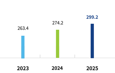 | 부채총계 | 263.4 | 274.2 | 299.2 |